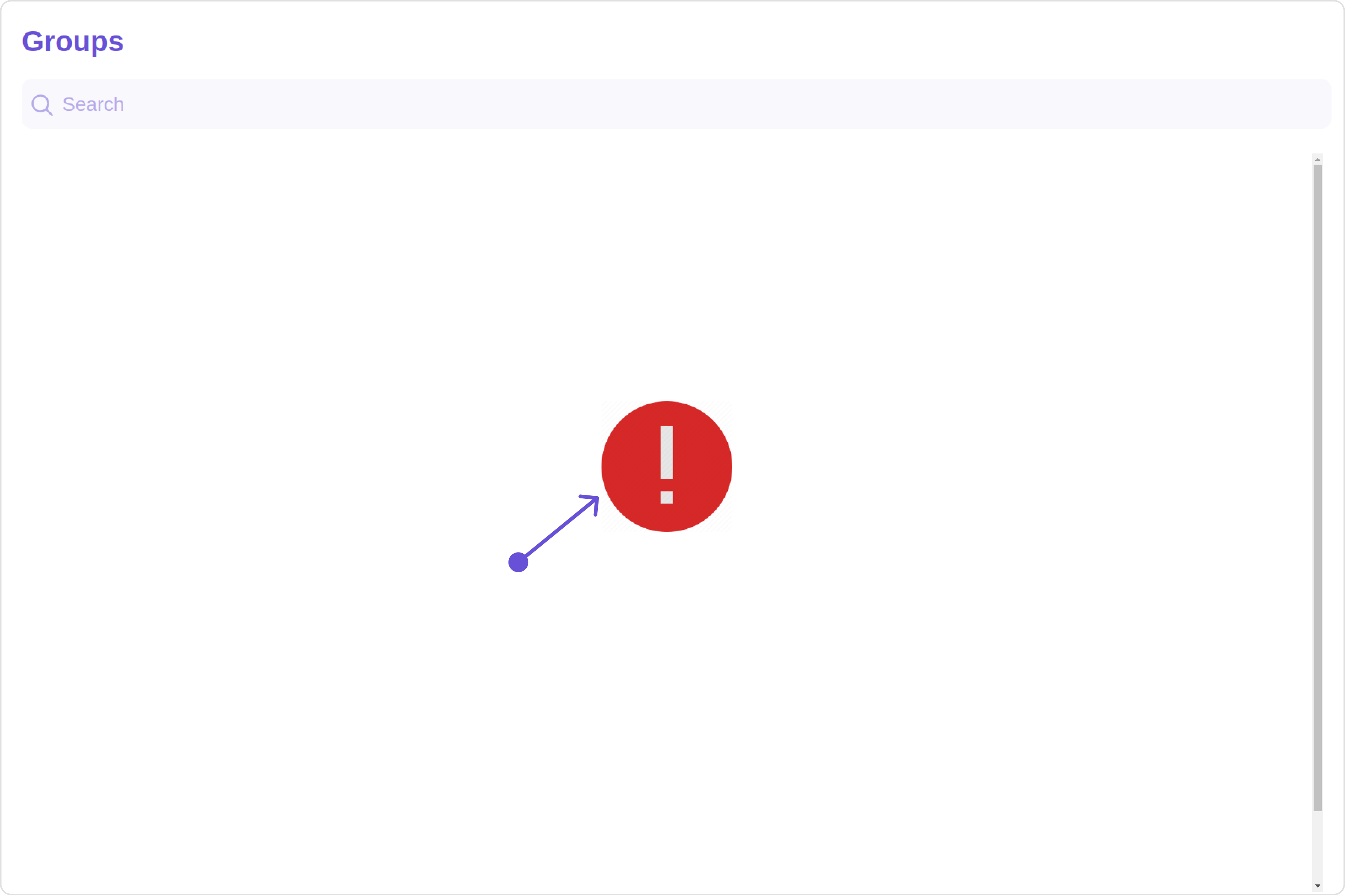 The Groups is a Component, showcasing an accessible list of all available groups. It provides an integral search functionality, allowing you to locate any specific groups swiftly and easily. For each group listed, the group name is displayed by default, in conjunction with the group icon when available. Additionally, it provides a useful feature by displaying the number of members in each group as a subtitle, offering valuable context about group size and activity level.
