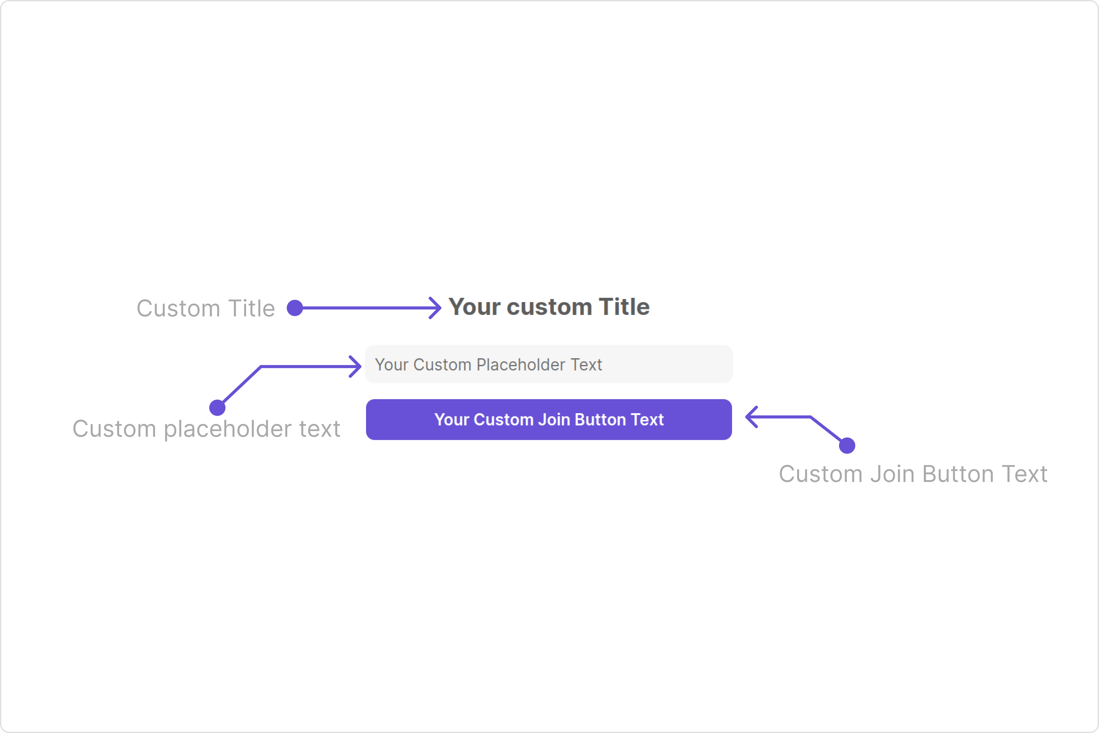 | joinButtonTextColor | Sets the color for the join button text | joinButtonTextColor?: string; |