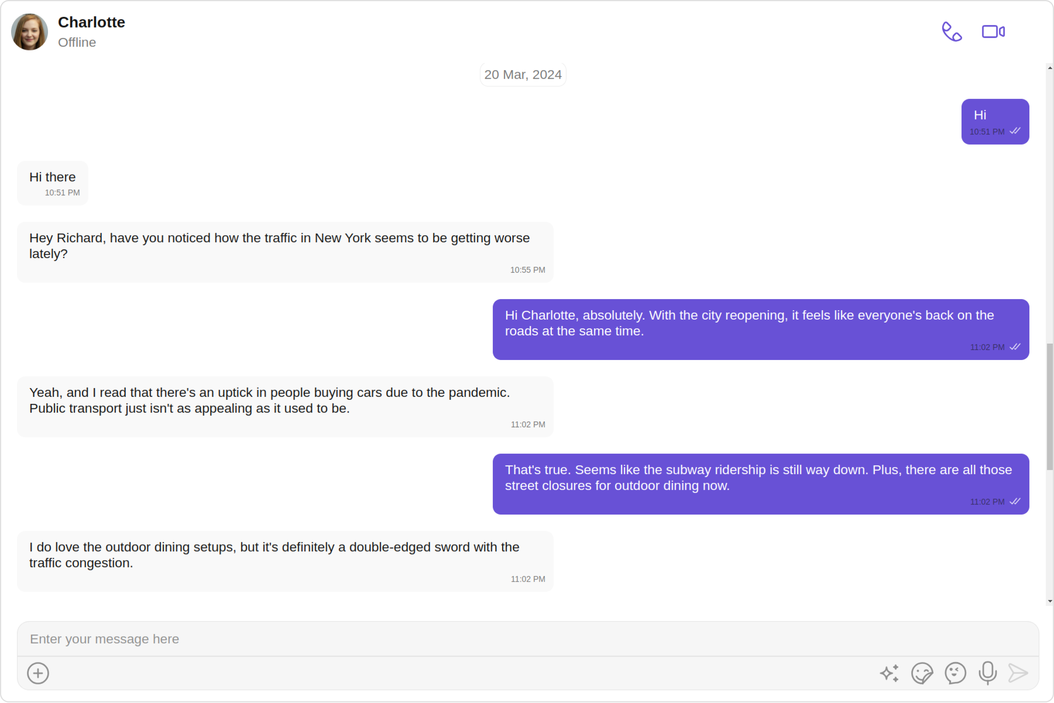 2. Header view: This displays the sender’s name and is especially useful in group chats where multiple users are sending messages.