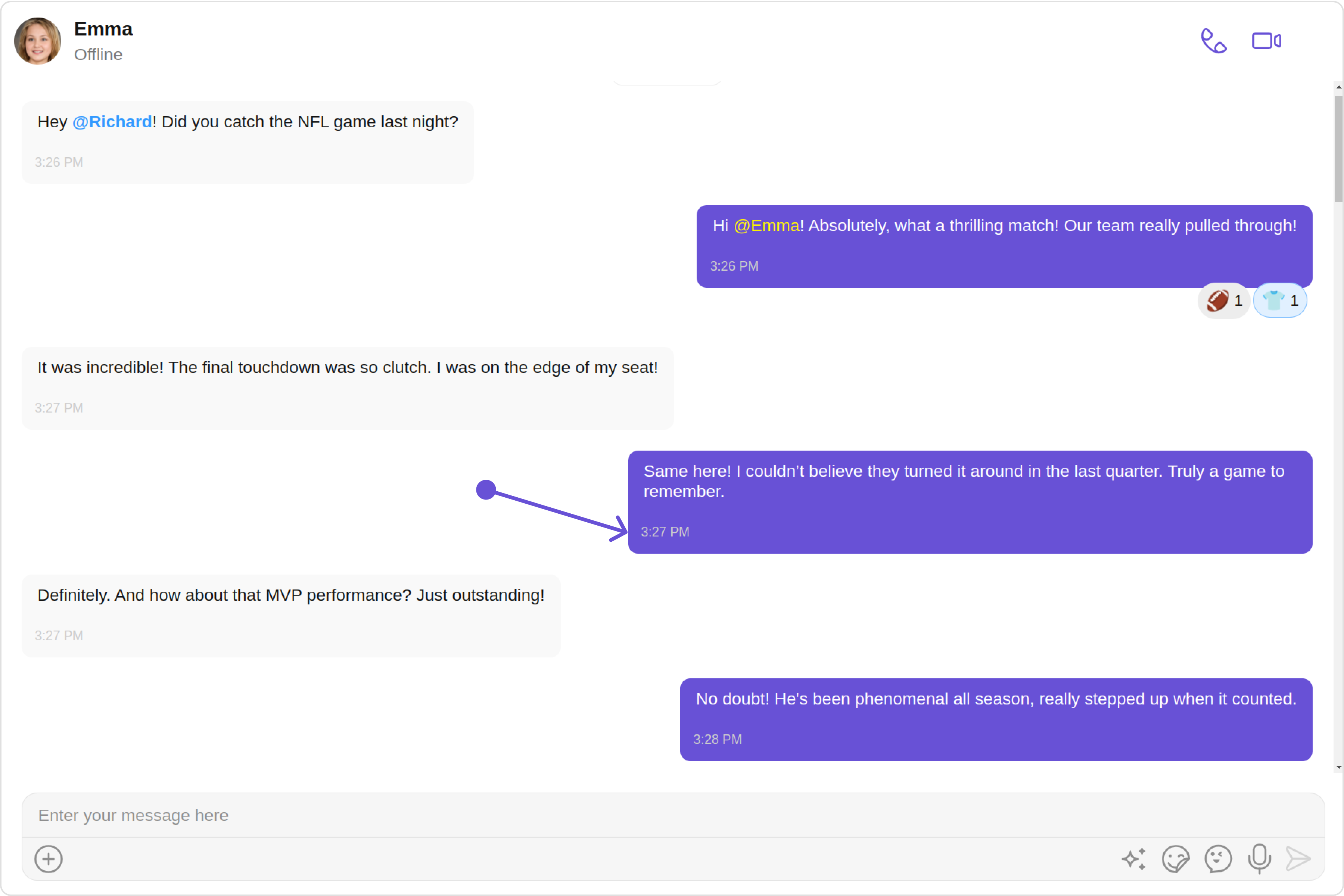 7. Footer view: This is where the reactions are displayed. It’s located at the bottom of the MessageBubble.