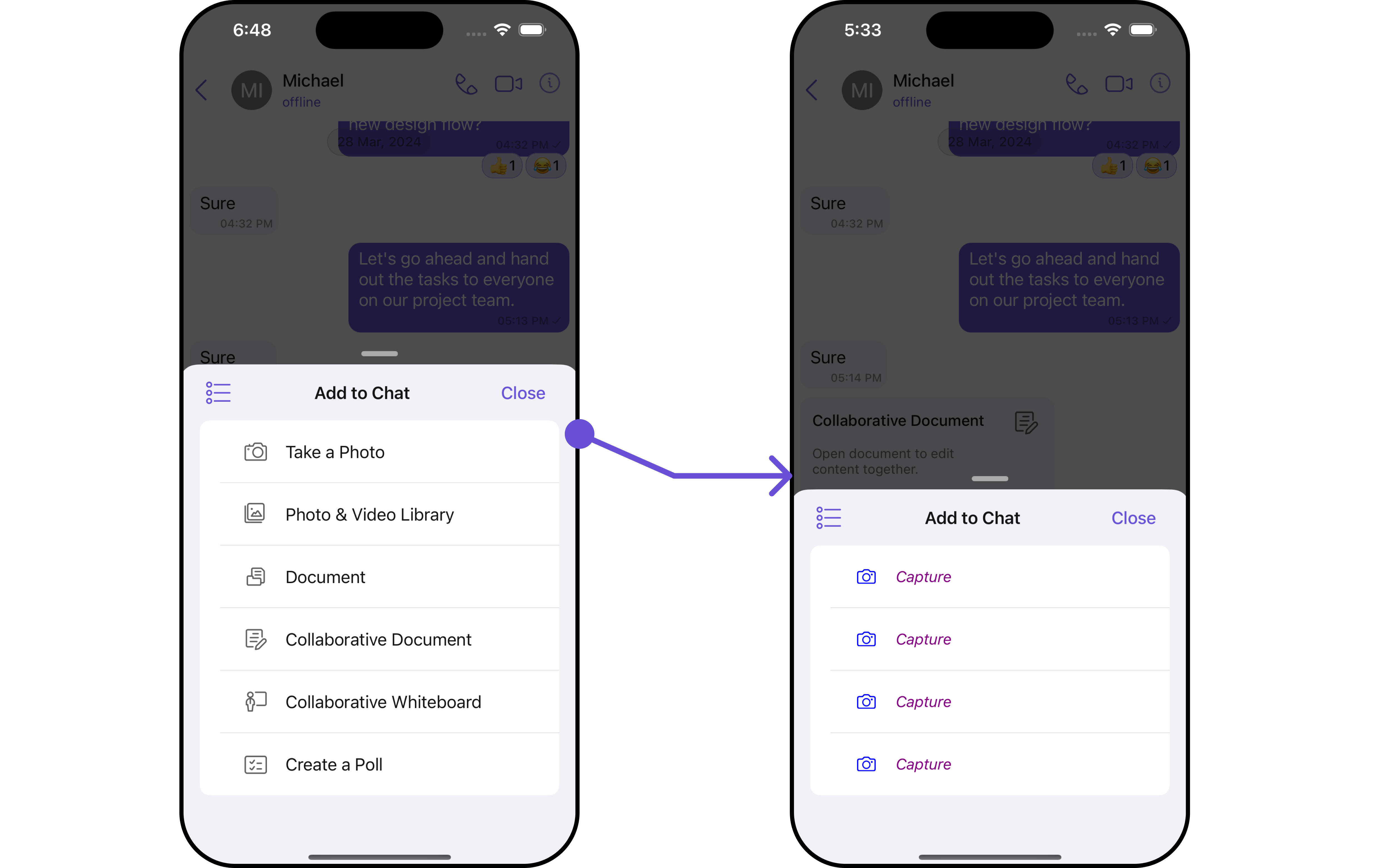 You can insert a custom view into the MessageComposer component to add additional functionality using the following method.- Swift